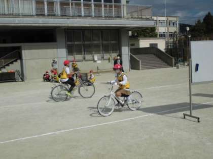 自転車教室が行われました。天候が心配だったのですが,よい気候で行うことができました。