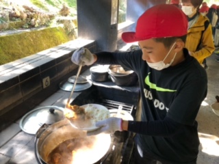 盛り付けをして,いただきます。みんなで協力して作ったカレーは最高です!