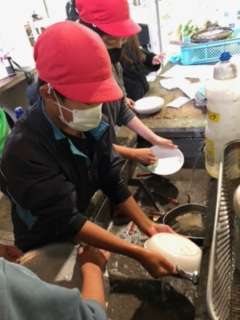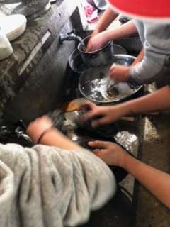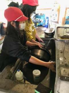 まだまだ片付けは続きます。食器もお鍋もピカピカにしていきます。もちろん,かまどの後始末もしていきます。
