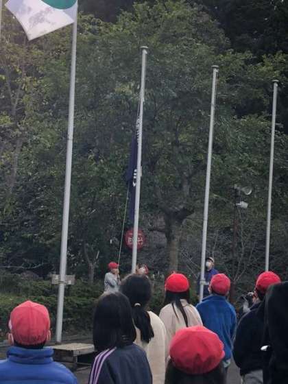 花背山の家での活動が終了します。玄関前で退所式を行いました。まだまだ,みんなとともに過ごしたい気持ちでいっぱいです。