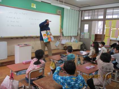 今日は,Andy先生が英語で,クイズや読み聞かせをしてくださりました。