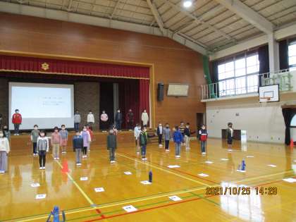 学年での練習には広めの場所が必要です。広くなった分,友だちの声が聞き取りにくいこともあります。「練習は本番のつもりで,本番は練習のつもりで」と積み重ねを大切に活動を進めていきます。