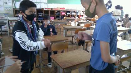 今回はどのグループもジャンケン大会をしました。トーナメントで勝ち上がった人は,本選に出場します。