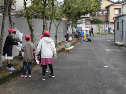 少し肌寒い季節になりました。校内の木々の葉も色づき,落ち葉も多くなりました。4年生は北門周りの畑と給食室周りでした。
