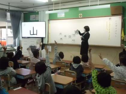 「この絵から,どんな漢字ができたと思う?」と先生が問いかけると,みんなの手が元気よく挙がりました。