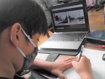 社会見学のことを振り返りながら,社会の学習を進めています。「これ,あったやつやぁ」「これも見たなぁ」とつぶやく子どもたち。反対に学習を進める中で,「あっこれ,こういう意味やったんや」という声も聞こえてきます。何よりも昔の京都の方々の心の強さを強く感じているようです。