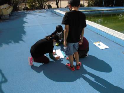 今日は,プールサイドで実験!1日かけての実験でした。結果は…?