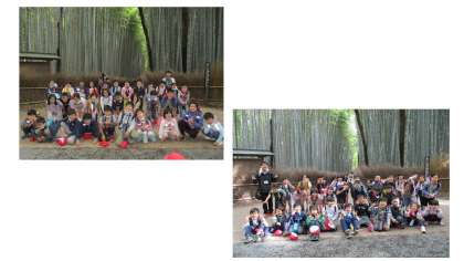 平日で比較的人がすくなく,竹林をバックに集合写真を撮ることができました。