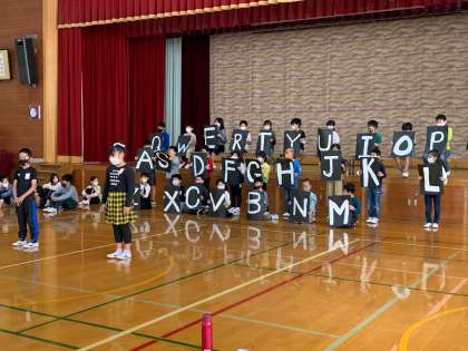 1日(月),3年生の発表も形になってきました。英語がたくさん並んでいます。ばらばらに並んでいるように見えますが,
