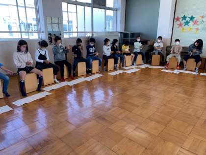 カホンのリズムうちにも挑戦中です。リズムと息がぴったり合うととってもきれいな合奏になります。