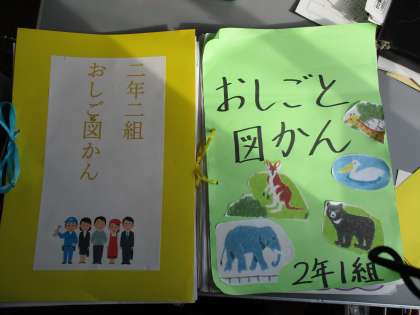 それぞれのクラスで作ったお仕事図鑑を読み合っています。