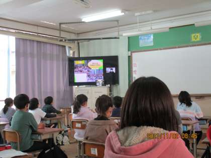 本日は月初めの朝会がありました。10月の活動の様子を校長先生からお話しいただきました。2年生の遠足では,13キロメートル歩いたことの話を聞くと「いっぱい歩いたんやなぁ」と話し「遠足やしね」とつぶやいていました。その後,4年生の社会見学の話を聞きながら,自分たちの集合写真に少しテンションがあがっていました。