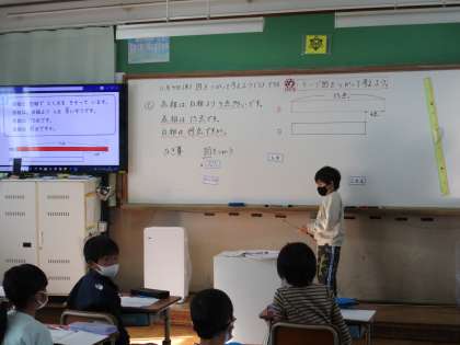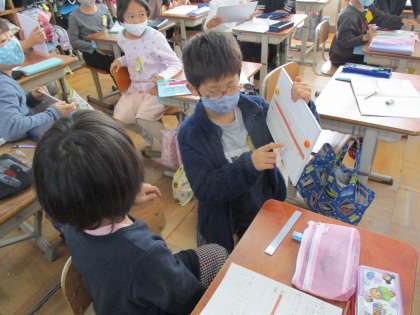 ペアや全体での話し合いも上手になり,図を使いながら説明することができました。