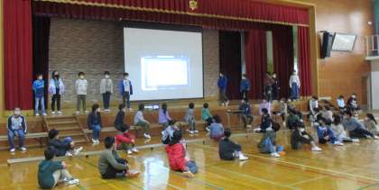 友だちが発表をしている間,どのような態度でいたらよいだろうか,自分はどのように見えているのか,自分の声はどのように聞こえいるのかを考えるために動画にとって教室で見ました。