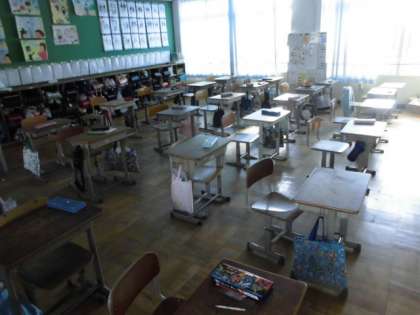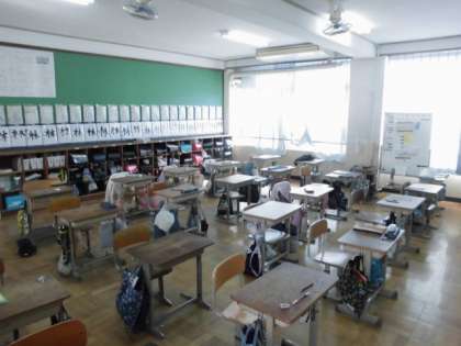 中間休の教室の様子です。教室は,冬の冷たい風のみが通りすぎています。外では楽しそうな声が響きわたります。この後の学習も活発になることを期待してしまいます。教室もまるで,休憩しているかのように静かです。
