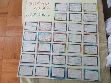 発表を見合った1年生とあおぞらの友だちと,メッセージを渡し合いました。