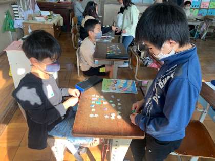 今までに学習した英語で,子どもたちは友達にほしい形を伝えようと一生懸命伝えている様子でした。
