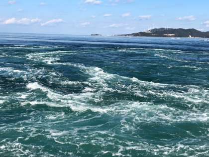 自然の偉大さを感じます。寒さも忘れて渦潮を見ています。