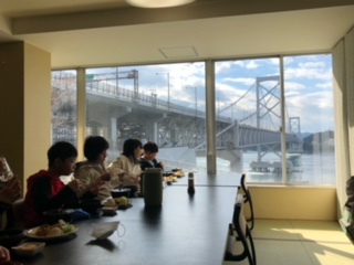 迫力のある渦潮を見たあとは,鳴門大橋が見えるレストランで最後の昼食です。