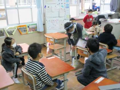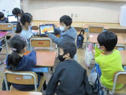 1年生教室の様子です。2つの教室で読み聞かせを行いました。終わった後に感想を聞いてみると,