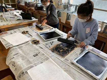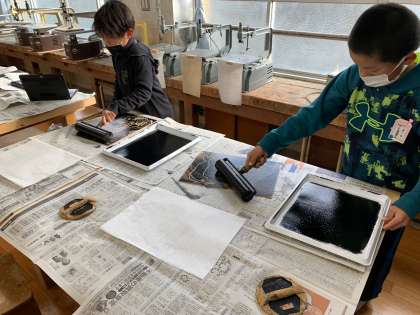 21日(火),3年生は図工の学習でスチレン版画に挑戦しました。いろんな色を使って,版画を刷りました。