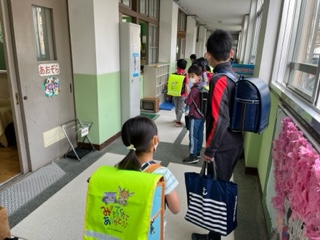 多くの6年生が,1年生を教室まで優しく丁寧に送り届けてくれていました。その後,全学年の教科書やノートを教室に運ぶのも手伝ってくれました。担任の指示がなくても,学校のために進んで活動してくれる姿は大変立派でした。