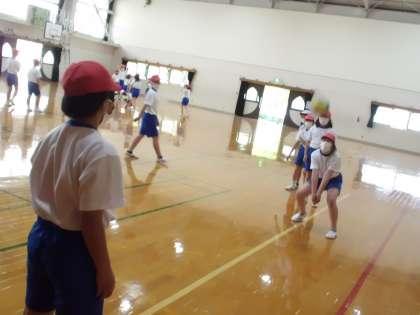 パスの練習では,手の組み方やボールの返し方などをチームごとに練習しました。なかなか思う方向にボールを返せず,苦戦している様子も見られましたが,それでもチームのみんなと一緒に楽しく活動していました。