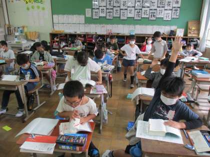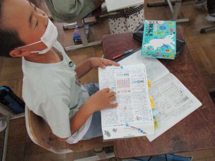 4年生で習う漢字辞典の使い方。今日は漢字辞典の3つの引き方について学習し,自分の名前に入っている漢字を調べて,意味や成り立ちについてノートにまとめました。調べたい漢字を見つけた時にはとても嬉しそうにしていました。