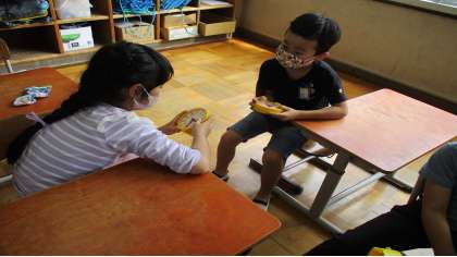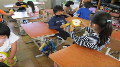 算数の学習では,時刻と時間の学習をしています。学びタイムでも時計を使って練習をしています。