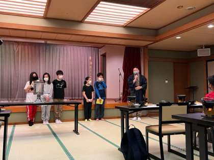 夕食の前に入所式を行いました。お世話になるホテルの方に挨拶をし,お話を聞きました。