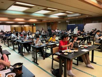 夕食の時間がやってきました。目の前にはおいしそうな料理が並びます。しっかりと食べて今日の疲れを吹き飛ばします。そして,明日,また元気に一日を過ごすことができるようにしたいと思います。