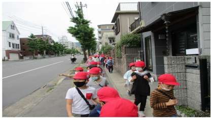 各クラスコースに分かれて出発です。普段歩いている道もみんなで歩いてみると大発見があったようです。