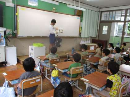 子どもたちはしっかりと聞いていました。意外な結末に,笑いも起きました。
