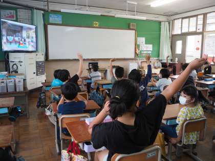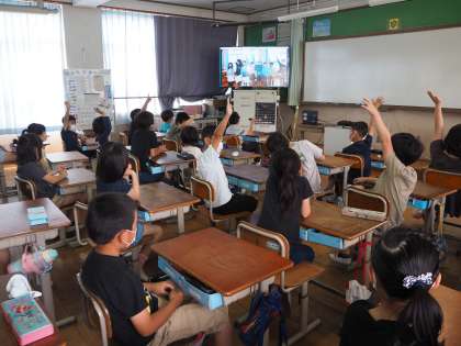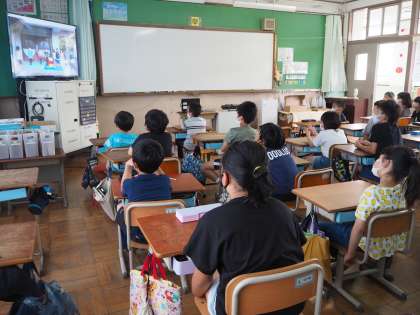 2年生から6年生まで,工夫を凝らした動画で,みんなにっこにこの笑顔で画面を食い入るように見ていました。