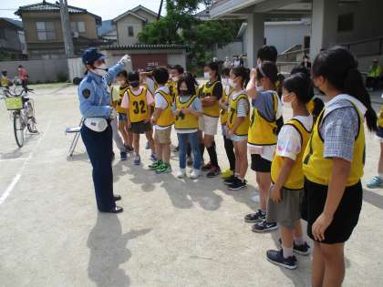 今日天気にも恵まれ,自転車教室を行いました。今日はPTAの方々や地域の交通安全推進会の方々,右京警察署の方々にお世話になり,自転車の安全な乗り方の実技講習とテストを行いました。自転車に乗るときのルールは知っているものもあれば,初めて知ったものもあったようで「難しかったけれど勉強になった!」「楽しかった!」と様々な感想をもっていました。これから自転車に乗るときには,今日の経験を生かして安全に乗れるようになってほしいと思います。