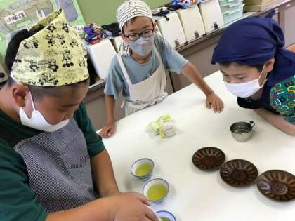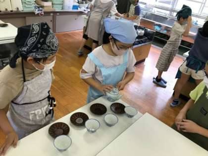 「自分で淹れたお茶は美味しい!」「家族のみんなにも淹れてあげよう。」と子どもたち。中には,「苦味の中に,甘みがある!」と大人のようなつぶやきもありました。