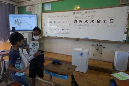 お互いの好きな教科を質問し合う中で,言い方を覚えていました。