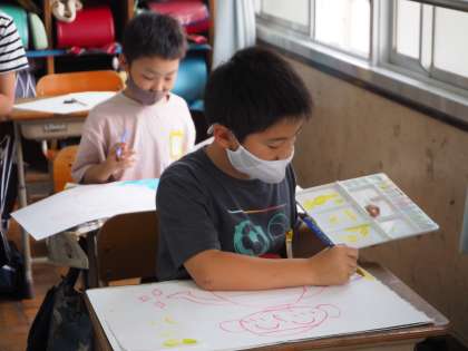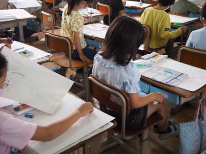 図画工作科で人権ポスターを作成しています。