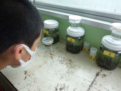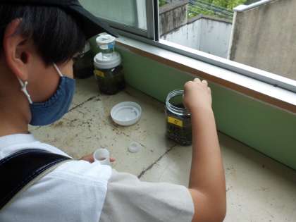 「運ぶ時はゆっくり運ぼう。」「えさをやりすぎないように気をつけないと。」と,みんな大切に育てています。