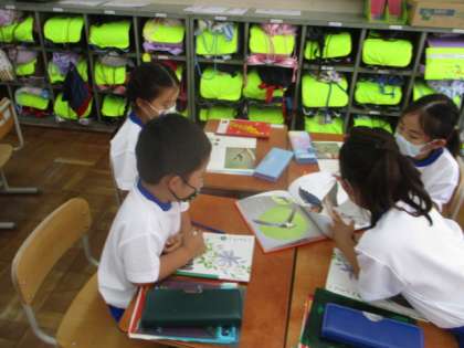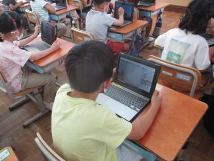 1年生では,国語科の「くちばし」の学習で「問いの文」と「答えの文」の書き方を生かして,ロイロノートを使ったり,本を基にカードを作ったりして「いきものくいず」を作っていきました。