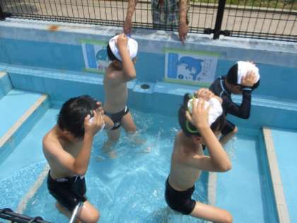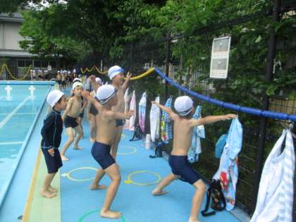 バディと一緒に準備運動や水慣れをして,お互いの様子をしっかりと見ました。はじめての大きなプール,とても楽しかったですね。