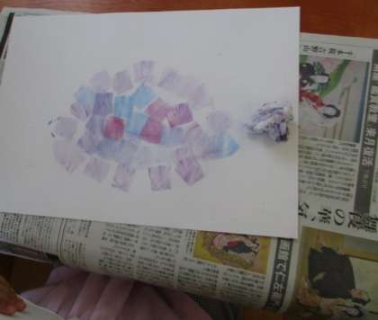 “こちょこちょぬり”とはちがい、薄く色づき、透けているように見えます。子どもたちも楽しんでいました。