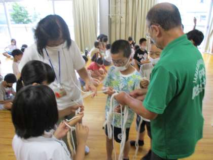 また、台風の時にものが飛ばないようにするためや、救命救助の時のために、ロープの正しい結び方も教えていただきました。