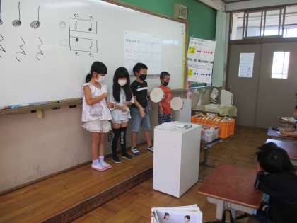 16日(金)、音楽の学習では『この空をとぼう』の曲で2拍子のリズム打ちを楽しんでいます。