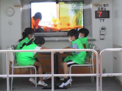 実際に段ボールベッドを組み立ててみたり、運動場にある非常用トイレを実際に見たりして、避難所となる広沢小学校での災害時の動きについて少しイメージがついたようです。起震車にも乗せていただき、実際にマグニチュード7の地震が起きた時の揺れについて実感することができました。