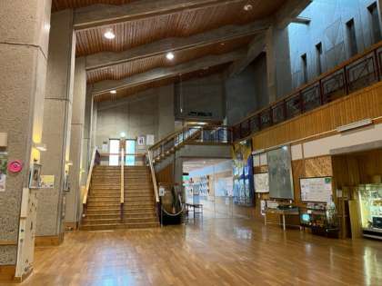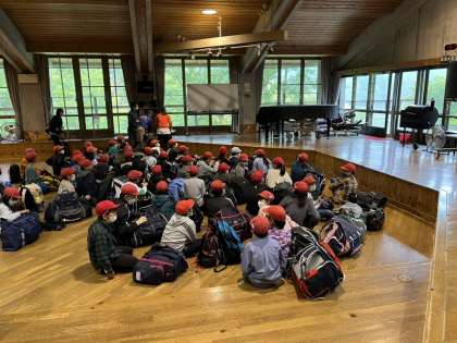 入所式が始まりました。山の家での活動を楽しく安全に行うために、お話をしっかりと聞きました。