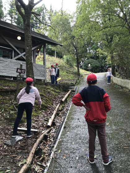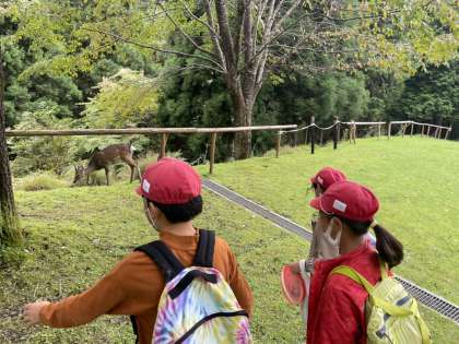 フライングディスクゴルフをしているとシカに遭遇しました!自然がいっぱいなのですね。普段はできない体験をたくさんしています。