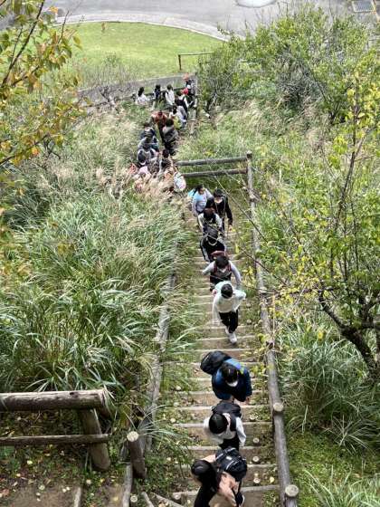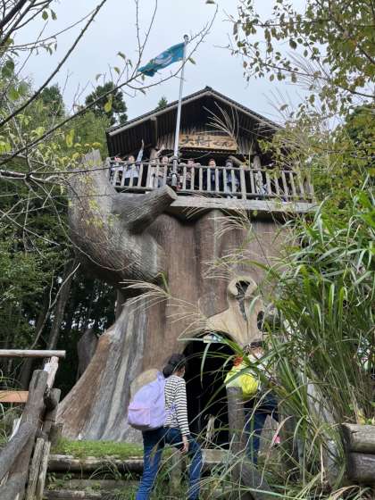 今日は残念ながら、みんなが楽しみにしていた「冒険の森」で楽しむことができませんでした。でも、夕食までに時間ができたので、冒険の森にある「大樹くん」という展望台にのぼりました。