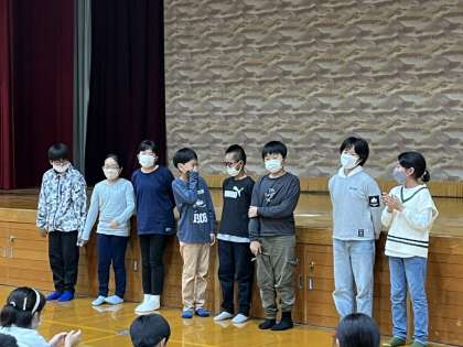 おうちの人へ「帰りました。」と報告した後、先生たちの話を聞ました。そして、終わるかと思ったところ、リーダーの子ども達が前に出て、ふり返りながら挨拶をしました。最後は、みんなで「おうちへレッツゴー!」とかけ声をかけました。