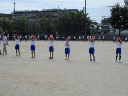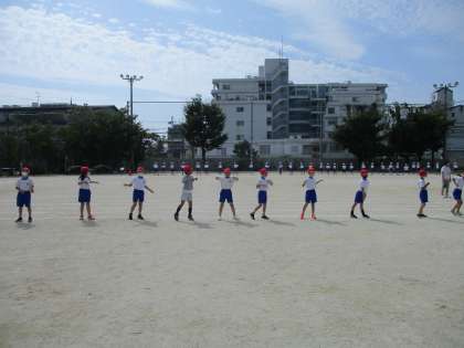運動会に向けて,練習を頑張っています。この日は初めて運動場に出てダンスの練習をしました。体育館で踊るのと比べ、大きく踊らないといけないと子どもたちも気がついたようで、覚えた振付けをさらに一生懸命踊っています。